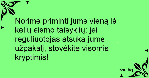 Norime priminti jums vieną iš kelių eismo taisyklių: jei reguliuotojas atsuka jums užpakalį, stovėkite visomis kryptimis!