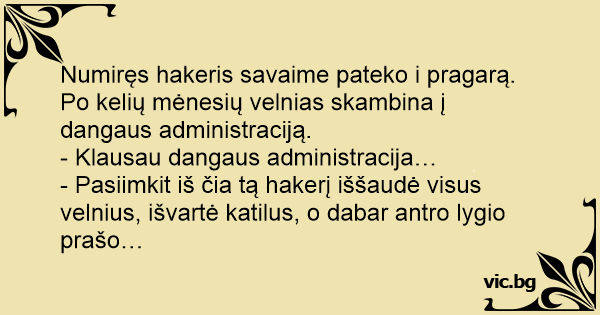 - Pasiimkit iš čia tą hakerį iššaudė visus velnius, išvartė katilus, o dabar antro lygio prašo…