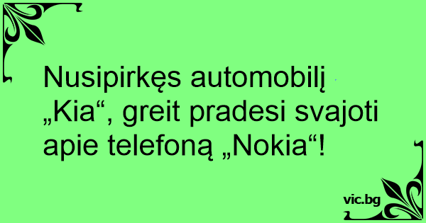 Nusipirkęs automobilį „Kia“, greit pradesi svajoti apie telefoną „Nokia“!
