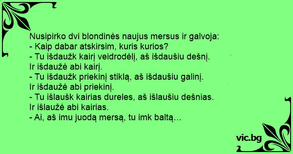 Nusipirko dvi blondinės naujus mersus ir galvoja: