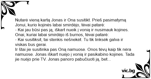 Nutarė vieną kartą Jonas ir Ona susitikt. Prieš pasimatymą Jonui, kurio kojinės labai smirdėjo, tėvai patarė: