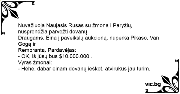 Nuvažiuoja Naujasis Rusas su žmona i Paryžių, nusprendžia parvežti dovanų