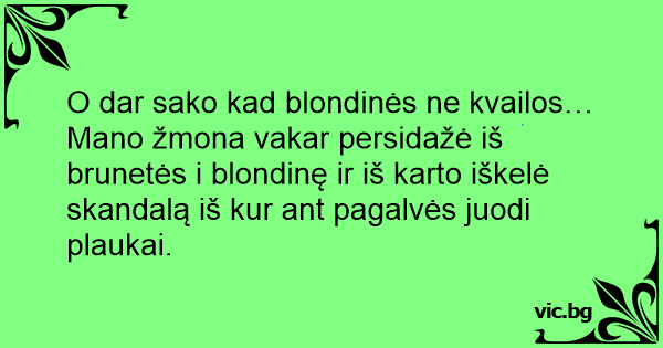 Mano žmona vakar persidažė iš brunetės i blondinę ir iš karto iškelė skandalą iš kur ant pagalvės juodi plaukai.
