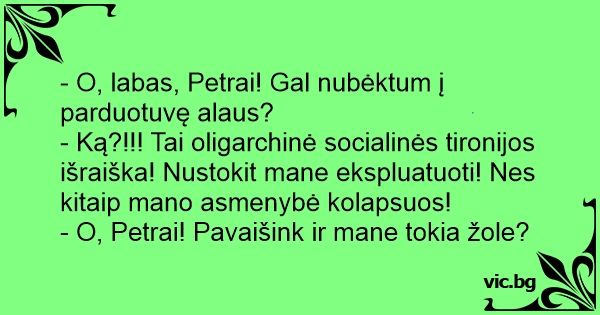 - O, labas, Petrai! Gal nubėktum į parduotuvę alaus?