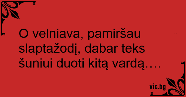 O velniava, pamiršau slaptažodį, dabar teks šuniui duoti kitą vardą….