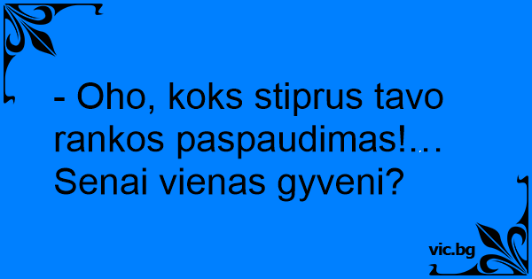 - Oho, koks stiprus tavo rankos paspaudimas!… Senai vienas gyveni?