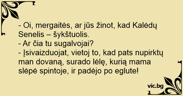 - Oi, mergaitės, ar jūs žinot, kad Kalėdų Senelis – šykštuolis.
