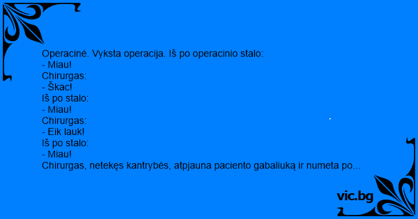 Operacinė. Vyksta operacija. Iš po operacinio stalo: