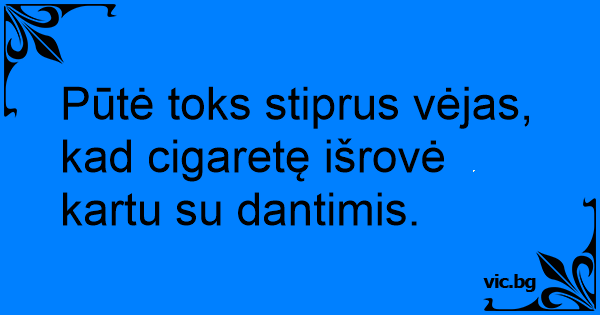 Pūtė toks stiprus vėjas, kad cigaretę išrovė kartu su dantimis.