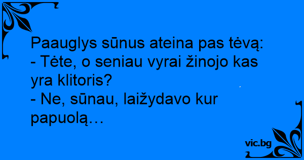 - Tėte, o seniau vyrai žinojo kas yra klitoris?