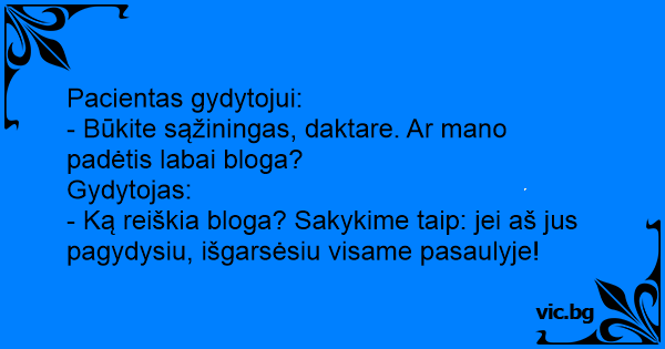 - Būkite sąžiningas, daktare. Ar mano padėtis labai bloga?