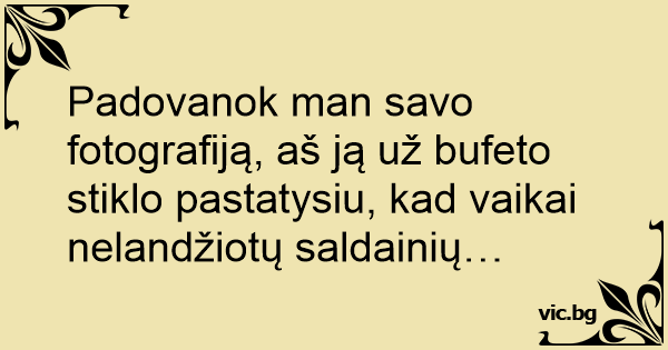 Padovanok man savo fotografiją, aš ją už bufeto stiklo pastatysiu, kad vaikai nelandžiotų saldainių…