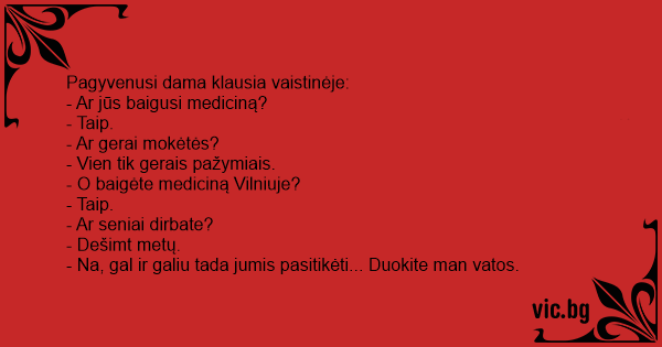 - Na, gal ir galiu tada jumis pasitikėti... Duokite man vatos.