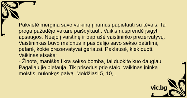 - Žinote, maniškė tikra sekso bomba, tai duokite kuo daugiau.