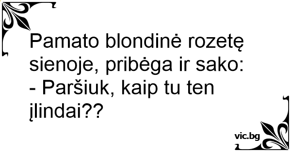 Pamato blondinė rozetę sienoje, pribėga ir sako: