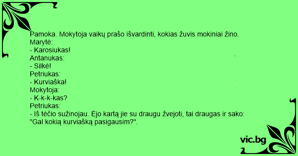 - Iš tėčio sužinojau. Ėjo kartą jie su draugu žvejoti, tai draugas ir sako: