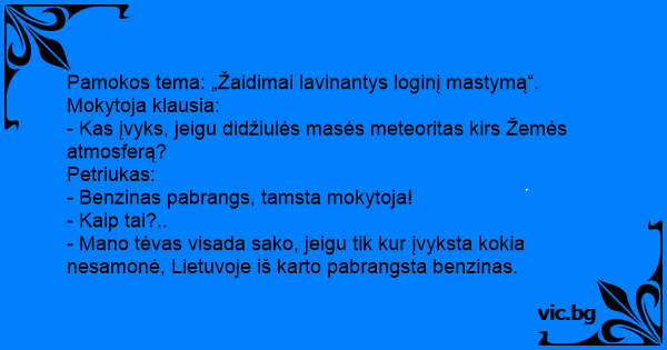 - Benzinas pabrangs, tamsta mokytoja!