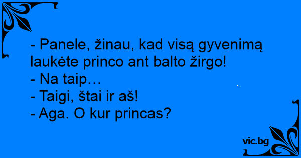 - Panele, žinau, kad visą gyvenimą laukėte princo ant balto žirgo!