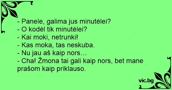- Cha! Žmona tai gali kaip nors, bet mane prašom kaip priklauso.