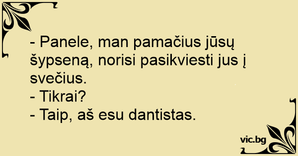 - Panele, man pamačius jūsų šypseną, norisi pasikviesti jus į svečius.