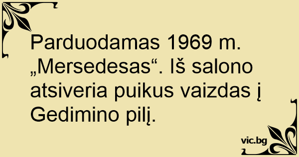 Parduodamas 1969 m. „Mersedesas“. Iš salono atsiveria puikus vaizdas į Gedimino pilį.
