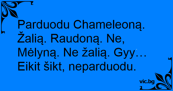 Parduodu Chameleoną. Žalią. Raudoną. Ne, Mėlyną. Ne žalią. Gyy… Eikit šikt, neparduodu.