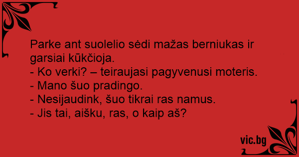 - Ko verki? – teiraujasi pagyvenusi moteris.