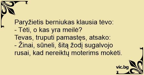 - Žinai, sūneli, šitą žodį sugalvojo rusai, kad nereiktų moterims mokėti.