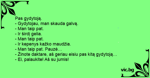 - Žinote daktare, aš geriau eisiu pas kitą gydytoją…