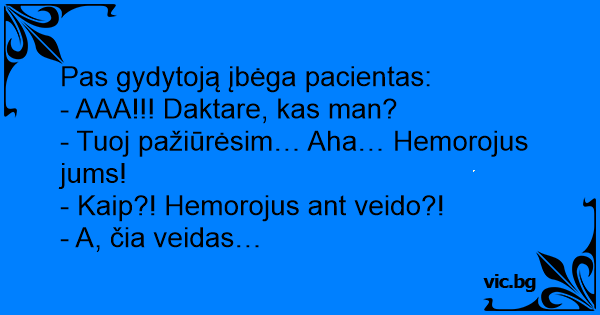 - Tuoj pažiūrėsim… Aha… Hemorojus jums!