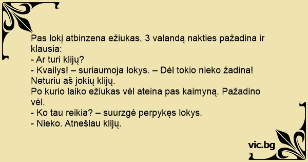 Pas lokį atbinzena ežiukas, 3 valandą nakties pažadina ir klausia: