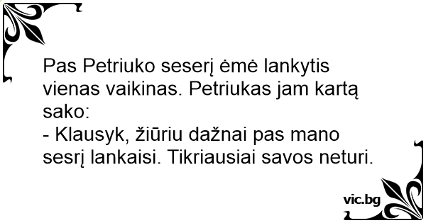 Pas Petriuko seserį ėmė lankytis vienas vaikinas. Petriukas jam kartą sako: