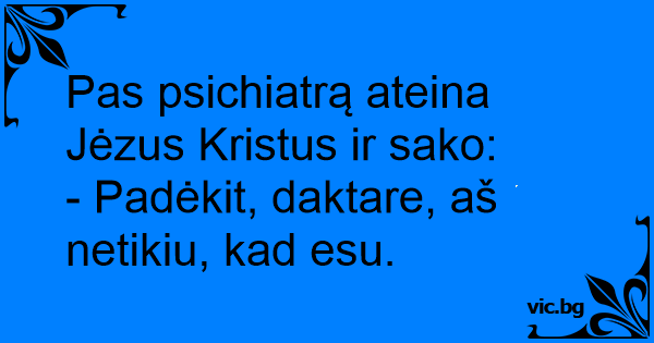 Pas psichiatrą ateina Jėzus Kristus ir sako: