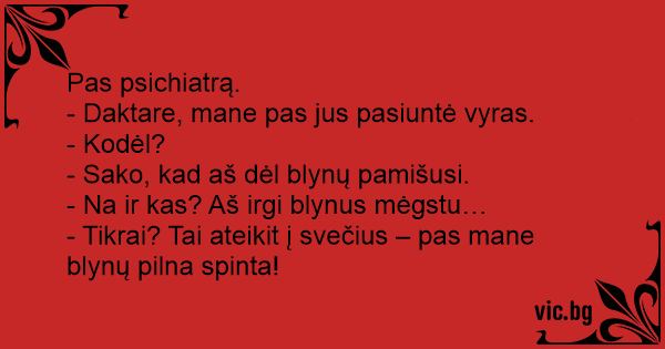 - Daktare, mane pas jus pasiuntė vyras.