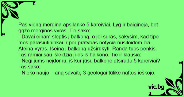 - Nieko naujo – aną savaitę 3 geologai tūlike naftos ieškojo.