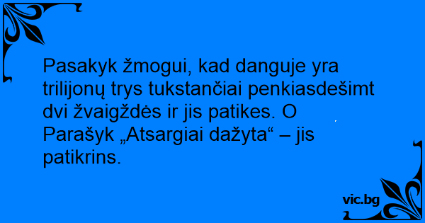 Pasakyk žmogui, kad danguje yra trilijonų trys tukstančiai penkiasdešimt dvi žvaigždės ir jis patikes. O