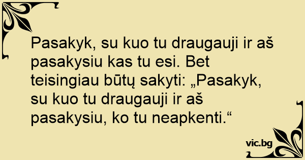 Pasakyk, su kuo tu draugauji ir aš pasakysiu kas tu esi. Bet teisingiau būtų sakyti: „Pasakyk, su kuo tu draugauji ir aš pasakysiu, ko tu neapkenti.“