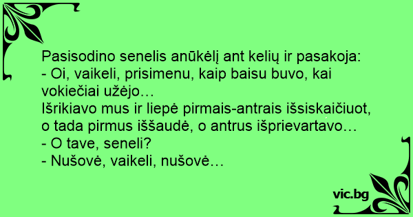 Pasisodino senelis anūkėlį ant kelių ir pasakoja: