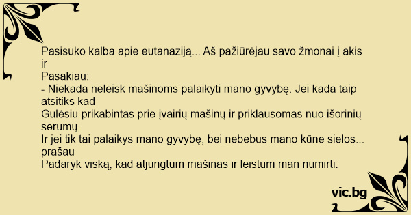 Pasisuko kalba apie eutanaziją... Aš pažiūrėjau savo žmonai į akis ir