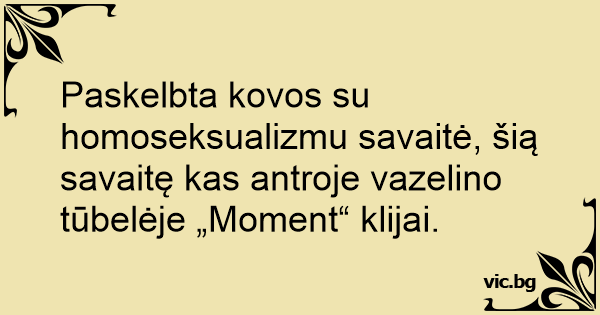 Paskelbta kovos su homoseksualizmu savaitė, šią savaitę kas antroje vazelino tūbelėje „Moment“ klijai.