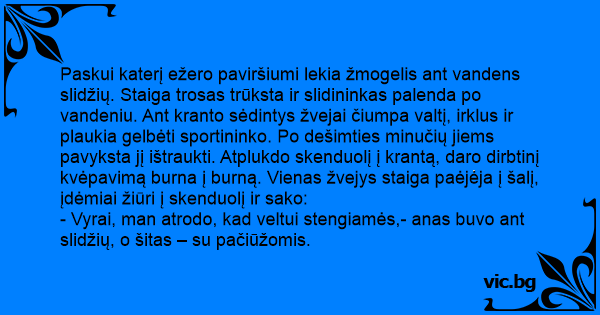 - Vyrai, man atrodo, kad veltui stengiamės,- anas buvo ant slidžių, o šitas – su pačiūžomis.