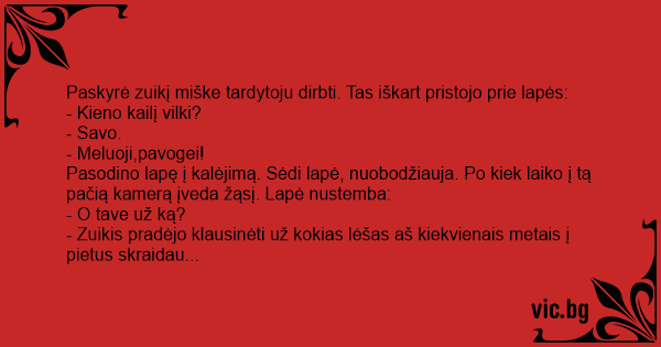 Paskyrė zuikį miške tardytoju dirbti. Tas iškart pristojo prie lapės: