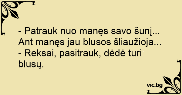 - Patrauk nuo manęs savo šunį... Ant manęs jau blusos šliaužioja...