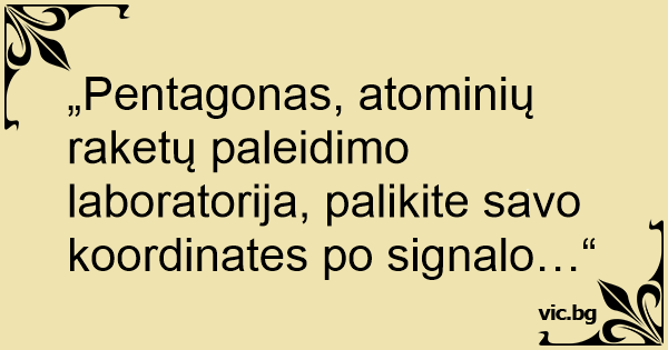 „Pentagonas, atominių raketų paleidimo laboratorija, palikite savo koordinates po signalo…“