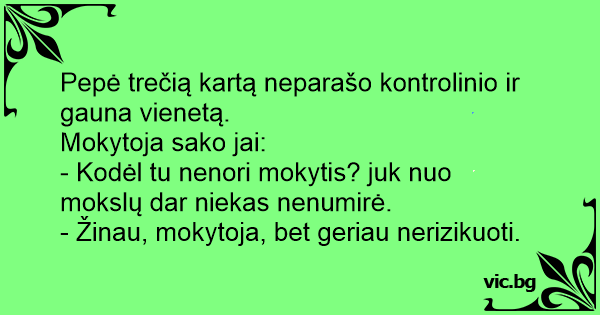 - Žinau, mokytoja, bet geriau nerizikuoti.