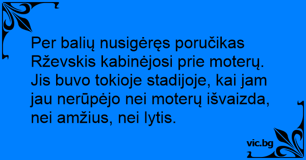 Per balių nusigėręs poručikas Rževskis kabinėjosi prie moterų. Jis buvo tokioje stadijoje, kai jam jau nerūpėjo nei moterų išvaizda, nei amžius, nei lytis.