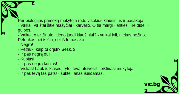 - Vaikai, o ar žinote, kieno juodi kiaušiniai? - vaikai tyli, niekas nežino. Petriukas nei iš šio, nei iš to pasako: