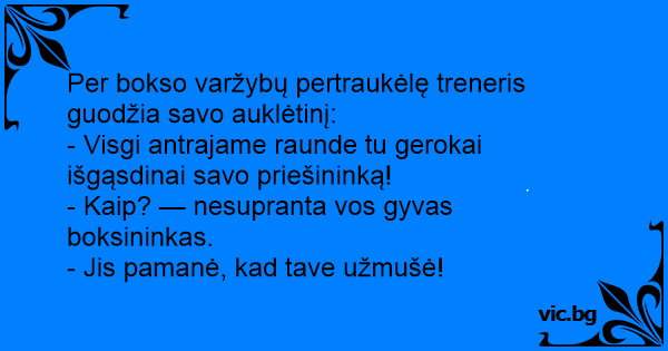 - Kaip? — nesupranta vos gyvas boksininkas.