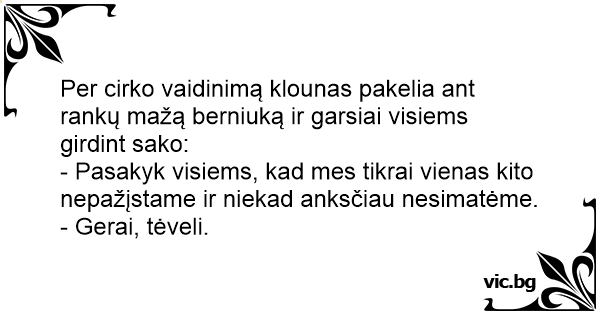 Per cirko vaidinimą klounas pakelia ant rankų mažą berniuką ir garsiai visiems girdint sako: