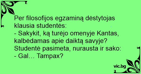 Per filosofijos egzaminą dėstytojas klausia studentės: